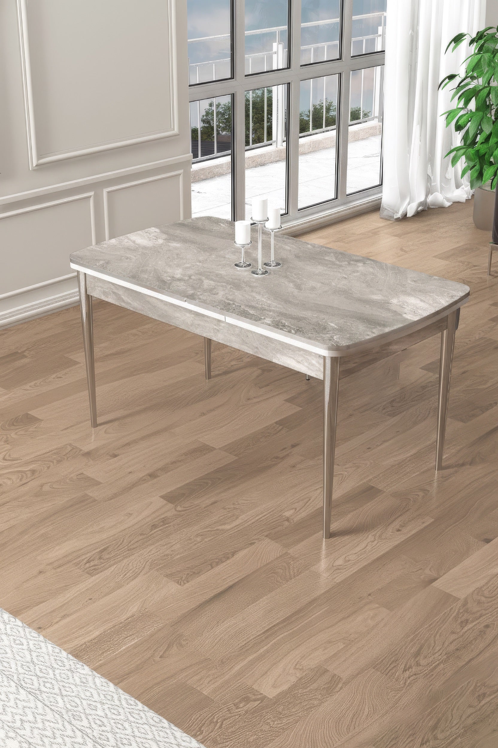 Pale Series Modern Elegance & Functional Extendable Dining Table with 6 Chairs